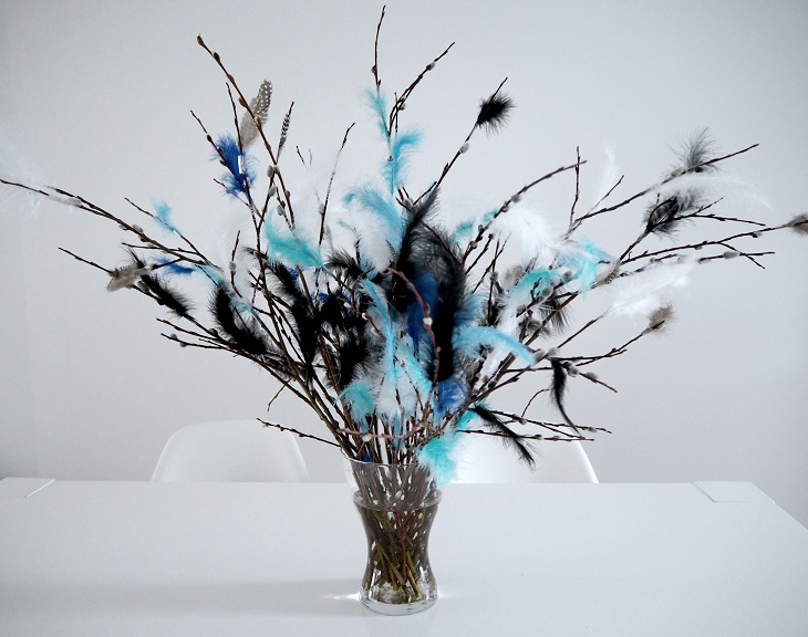 Tänä vuonna virvotaan Suomen juhlavuoden väreissä. Ei ollut tarkoituksellista, nämä vaan sattuvat olemaan trullin tämänhetkiset lempivärit. Aika kivalta ne näyttävät vaikka kaikki perinteiset pääsiäisen värit puuttuvat. Täällä odotellaan virpojia ja päivä menee varmaankin palkkoja jakaessa.